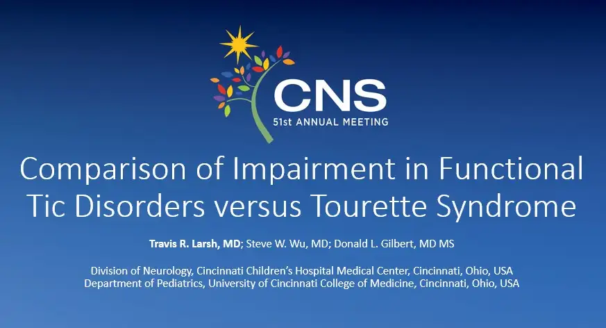 Travis Larsh, MD, a pediatric movement disorders specialist at Cincinnati Children’s, presented findings Oct. 13, 2022, at the annual Child Neurology Society meeting, held in Cincinnati. His work was also discussed by multiple national experts in an article posted in Neurology Today.