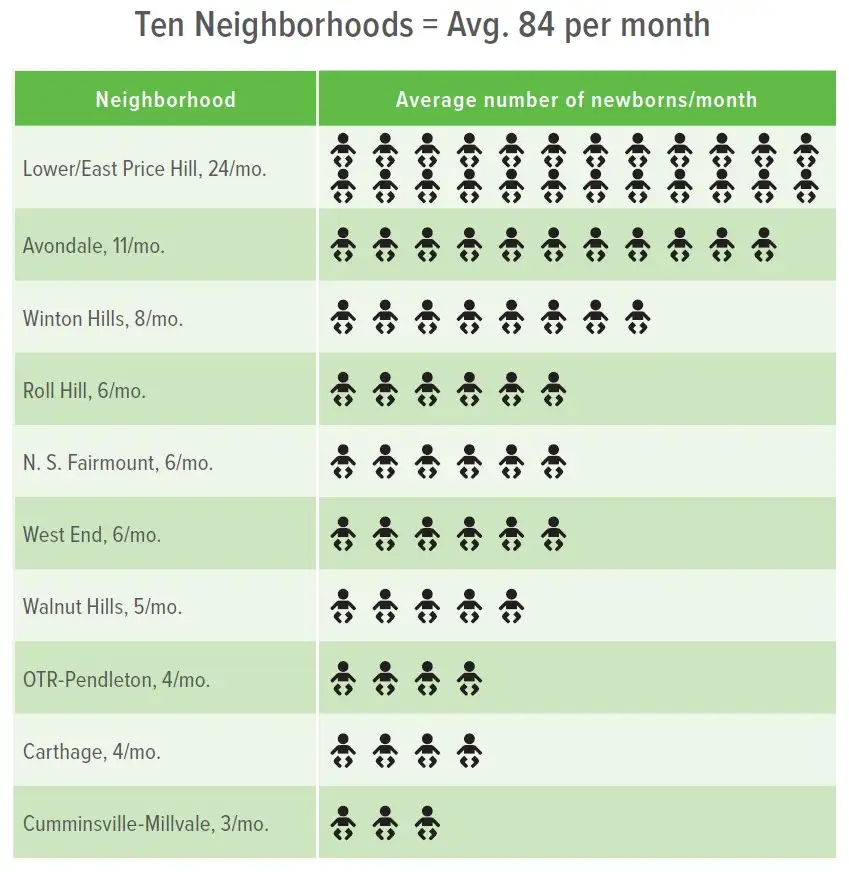 In previous Community Health strategic plans, hospital leaders successfully worked with community stakeholders to advance focus on population health priorities. Infant mortality rates in Hamilton County have been significantly reduced. Asthma hospitalization rates across the county decreased. The days children from Avondale and Price Hill spent hospitalized decreased. The Cincinnati Child Health-Law Partnership, a collaboration with the Legal Aid Society of Greater Cincinnati, has led to a 40% reduction in hospitalizations, in part by prompting legal actions against owners of unhealthy apartment buildings.
