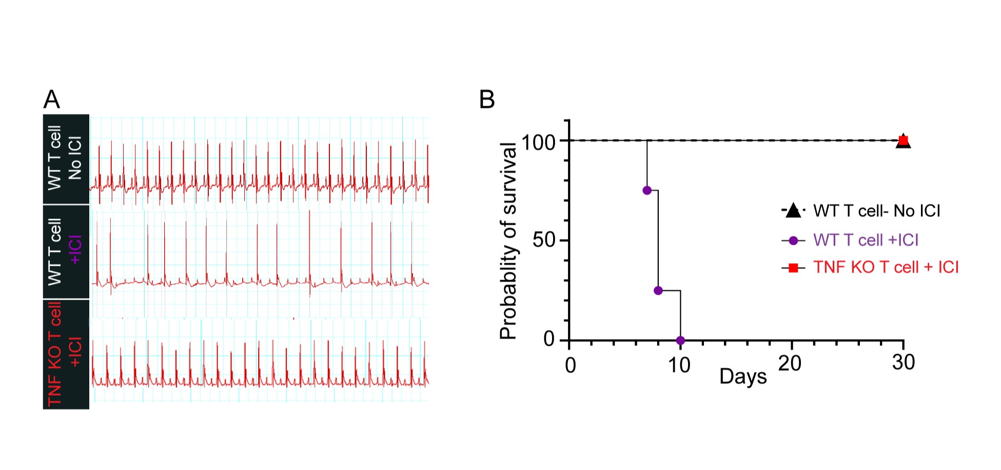 To better understand the complication, the research team engineered a new mouse model that accurately mimics immune checkpoint inhibitor–induced myocarditis. Then, in a series of advanced experiments, the team pinpointed a key driver of the complication: CD8 T cell–derived tumor necrosis factor (TNF).