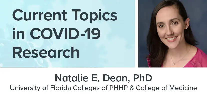 During the sixth installment of the Current Topics in COVID-19 Research Seminar Series on May 12, 2021, Natalie E. Dean, PhD, described several innovative strategies for evaluating investigational vaccines tailored to the epidemic context. (click here to watch the recording).