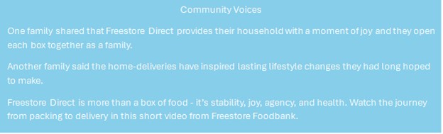Unlike many food support programs that end after a few months, this one is continuous. Families can continue receiving home deliveries for as long as they need, a flexible approach that recognizes the complexity of food insecurity.
