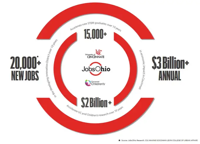 The announcement included a commitment from JobsOhio, the state’s economic development corporation, to invest up to $100 million to improve talent development and accelerate research and development initiatives at Cincinnati Children’s and UC.