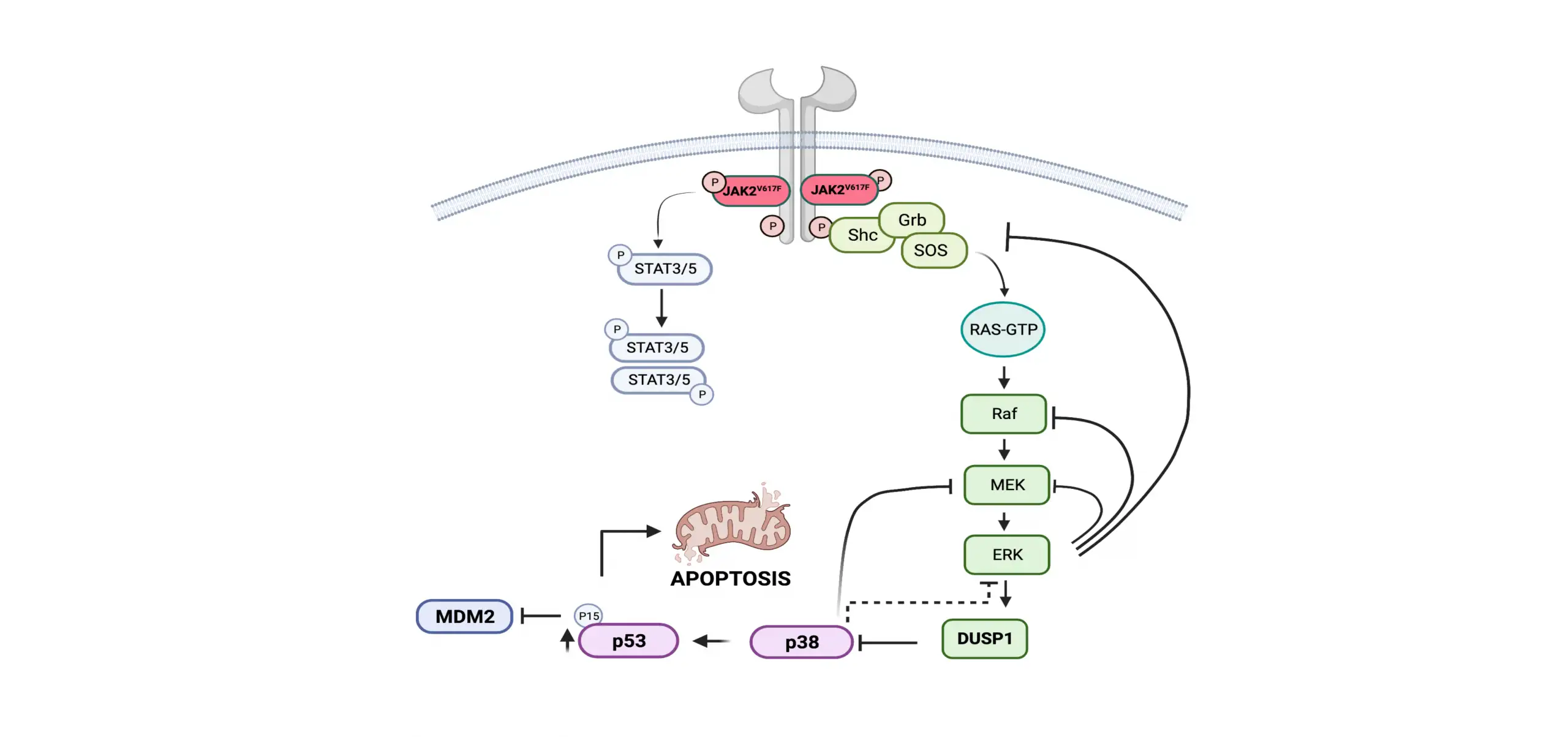 This study identifies DUSP1 as a potential target for treating myeloproliferative neoplasms (MPNs) that are resistant to JAK2 inhibitors. The findings, published in the journal Leukemia, showed that targeting DUSP1 eradicates JAK2 mutated MPN in mice, providing a novel therapeutic approach.