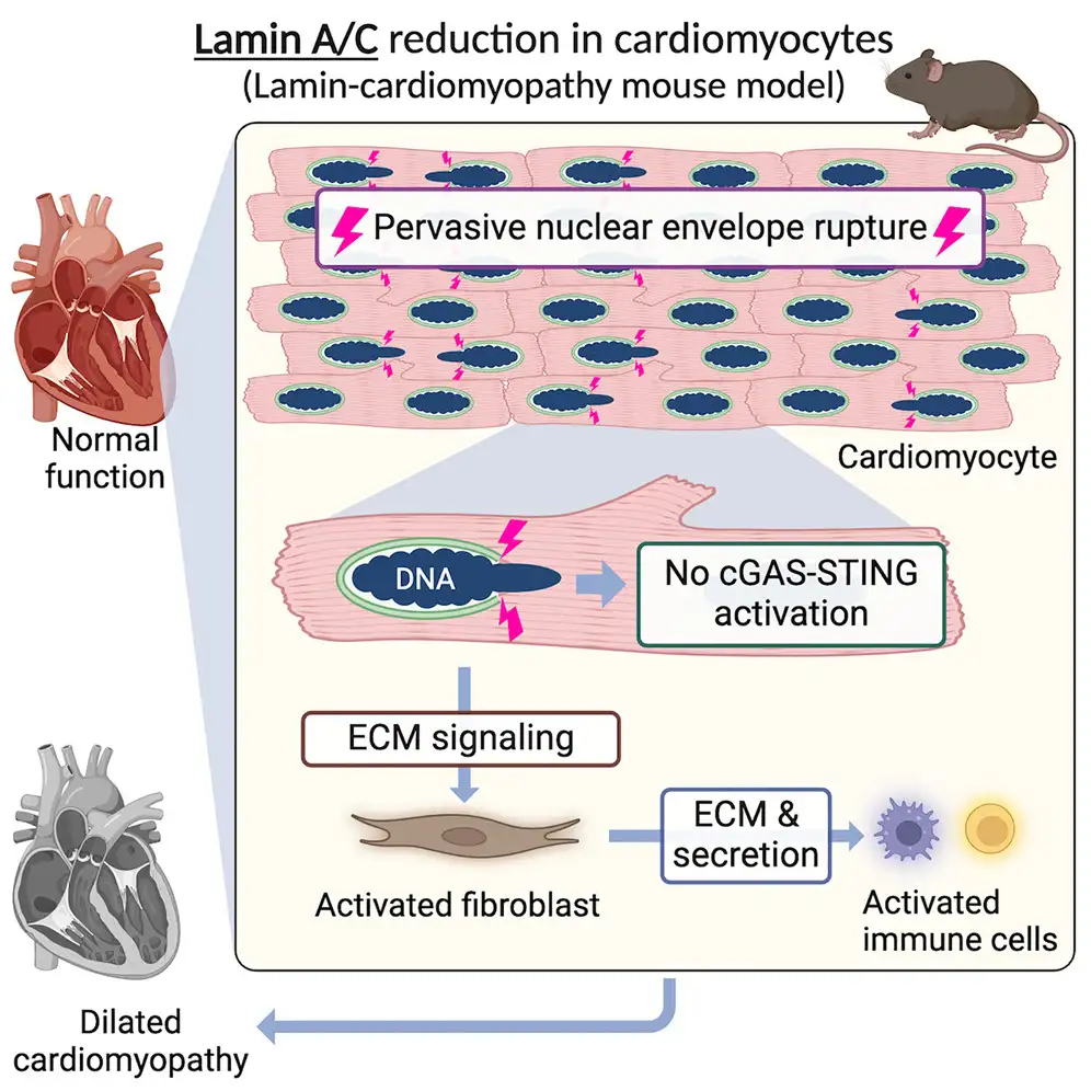 Until this study, many heart experts believed that nuclear envelope ruptures cause DCM by activating an immune response mechanism known as the cGAS-STING pathway.