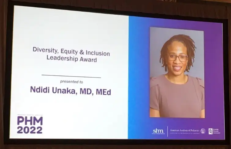 Ndidi Unaka, MD, MEd, received the Diversity, Equity, and Inclusion Leadership Award.