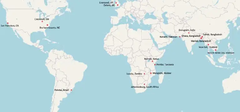 This study involved data from 18 international pregnancy cohorts collected through the International Consortium on Selenium, Genetics and Preterm Birth (a Bill & Melinda Gates Foundation-funded project). These globe-spanning cohorts provided extraordinary diversity in terms of geography, social status, ancestral background, ethnicity and environmental factors.