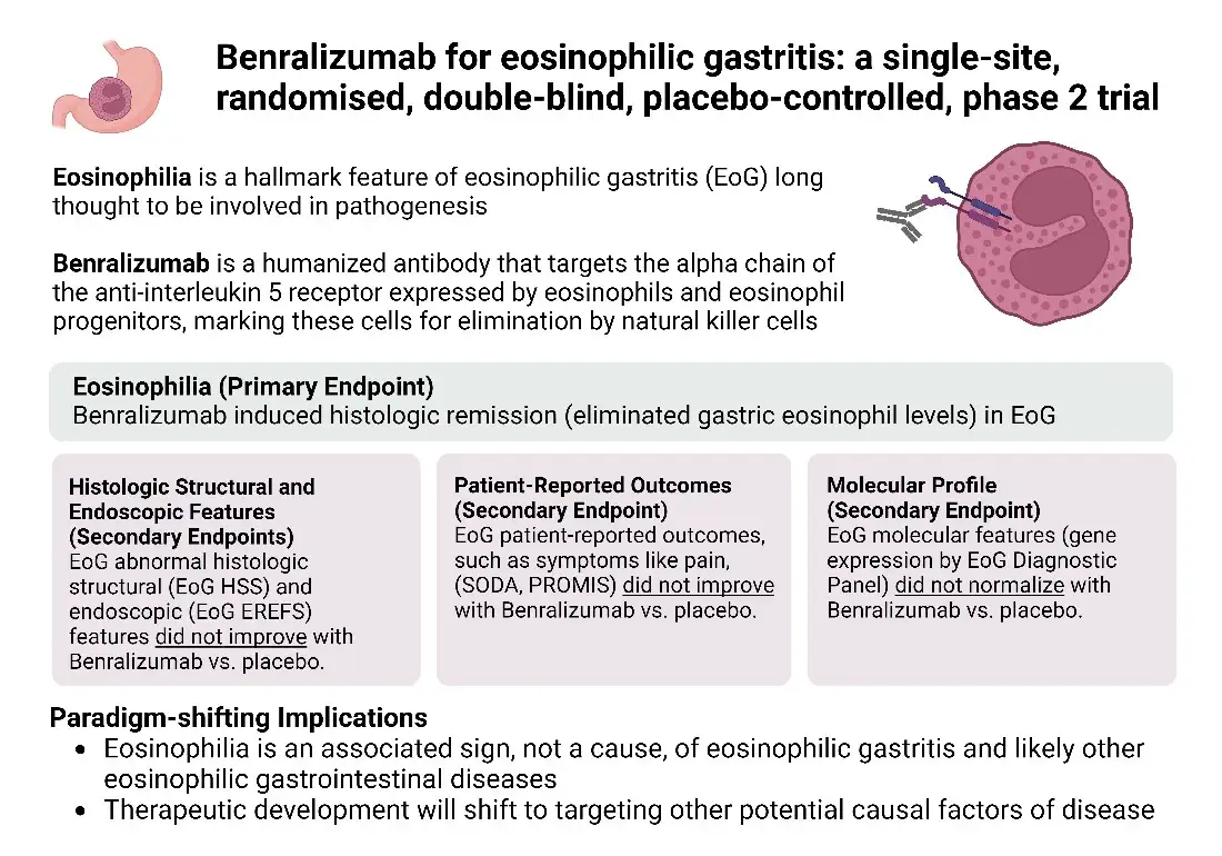 | Original title: | Benralizumab for eosinophilic gastritis: A phase 2, randomized, double-blind, placebo-controlled trial |