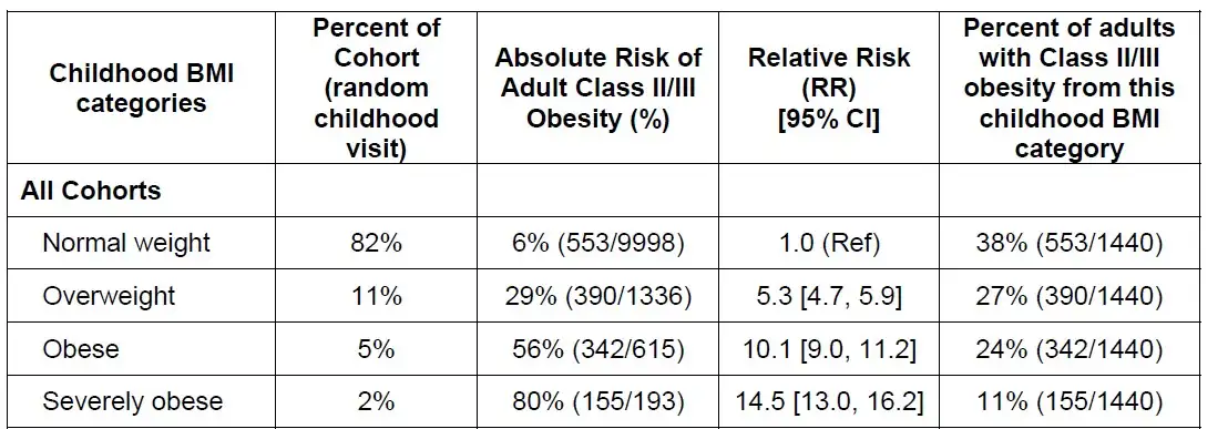 Overall, obesity rates were higher among American participants than from other nations. Importantly, although the highest risks for adult severe obesity were among those with childhood severe obesity, more than one-third of the severely obese adults were normal weight as children.